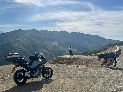 We will depart for an early morning ferry. Although a simple crossing, getting through the busy commercial port of Tangier Med can be quite slow. The crossing takes 1 ½ hours and apart from a small cafeteria, there is not a lot to do onboard except view the impressive rock of Gibraltar and it’s amazing Levante cloud if the wind is in the right direction. We will clear passport control whilst onboard the ferry. With passports stamped, once we disembark, we’re in Africa! The Moroccan border crossing is typical of Africa. It’s organised chaos and can be slow going. You need a dose of patience but once through, we quickly get our third party insurance sorted out and mobile sim cards for those that want connectivity whilst in Morocco. Our usual sim card man is a toothless old guy that helps set your phone up for you, for a quick photo with him. Immediately we will climb into the Rif Mountains. We will ride the peaks road and although filled with windfarms, it is quite spectacular seeing the valleys on either side of the road. We will slowly pass through villages where the kids regularly come out and wave at passing motorcyclists. It’ll be your first dose of Moroccan hospitality. Depending on the time of our crossing, we will stop for a light lunch before continuing past Tetouan and then onto the fabled blue city of Chefchaouen, which will be our first night in Morocco. Camera’s at the ready as the views here are amazing. Chefchaouen in local Berber language means ‘look at’ (Chef) ‘the horns’ (chaouen). Behind the town are two tall peaks, denoting the horns. Historically, persecuted Muslims and Jews sought refuge here during the Spanish Inquisition (Reconquista) and they found the naturally fortified town to settle in. During World War II, there was another influx of Jews to this area, fleeing the chaos of Europe. The blue is said to have been introduced by the Jewish settlers as it has significance within Judaism. The town itself has much to offer but is geared towards tourists. There is a lovely waterfall which is an easy walk and if the weather is clear, you can take a spectacular walk up to the Spanish Mosque overlooking the city for an amazing sunset view, where one of the well looked after stray dogs may keep you company for a biscuit. Maybe we will go for a camel burger tonight. Genuinely tasty!